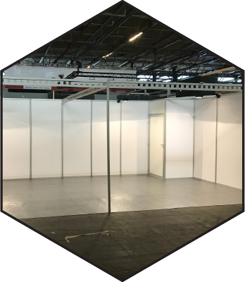 Met onze systeemwanden bouwen we beursstanden van 9 tot 60 m², van 2,4 meter tot 3 meter hoogte. Inbegrepen in de prijs zijn vloerbedekking en 1 spot per 3 meter gesloten wand. Voor sommige beurzen kan er extra transport gerekend worden. Volgende uitvoeringen van wanden zijn beschikbaar: